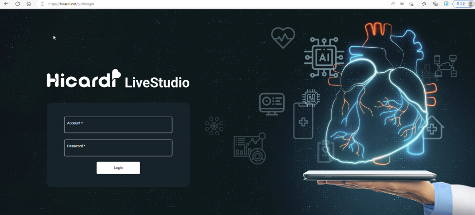 → 이 과정을 거치면 심전도 기록 데이터가 https://hicardi.net/auth/login 로 전송됩니다.