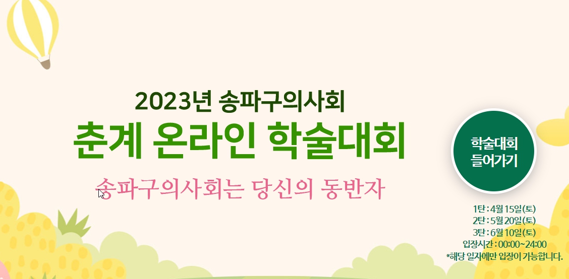 | [2023.04.15] 2023년 송파구의사회 춘계 온라인 학술대회 (0) | 2023.03.18 |