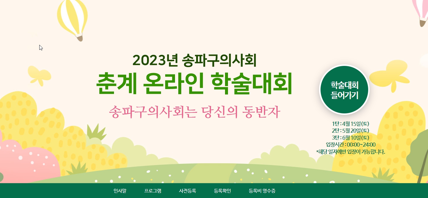 | 2023.05.20 송파구의사회 춘계 온라인 학술대회 2탄 (0) | 2023.05.10 |