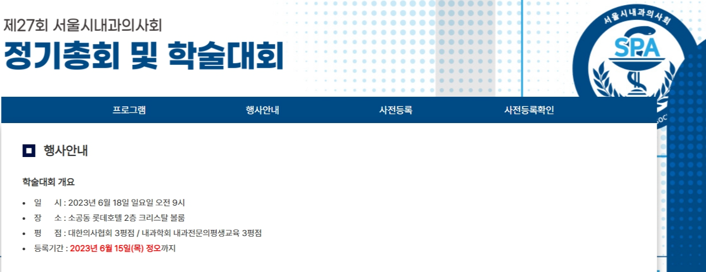 | 서울시내과의사회 정기총회 및 학술대회 【2023년 6월 18일】 (0) | 2023.06.10 |
