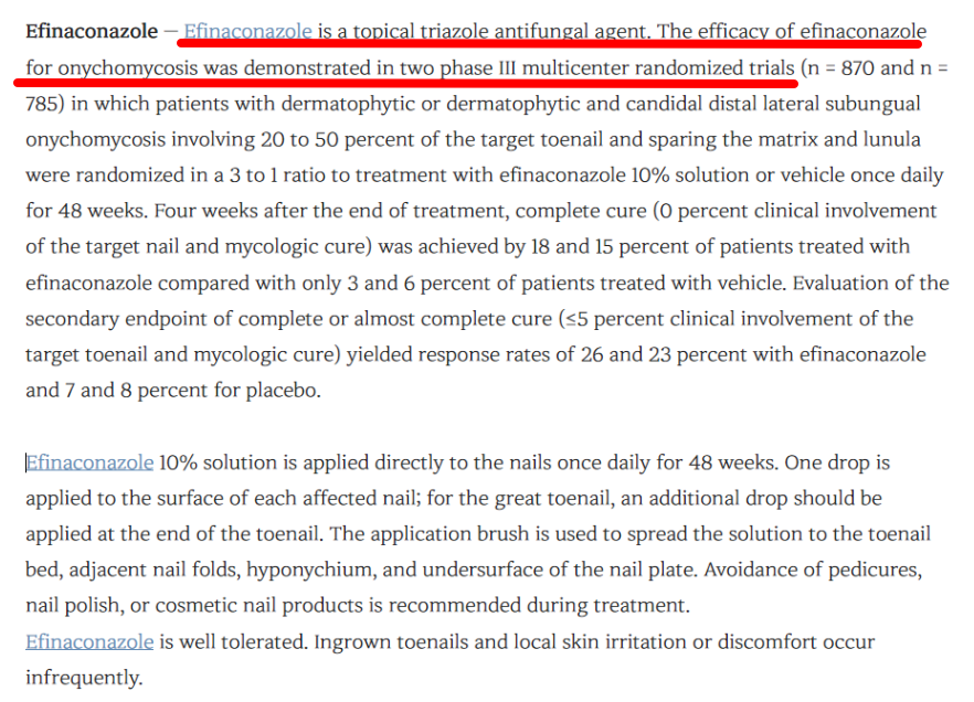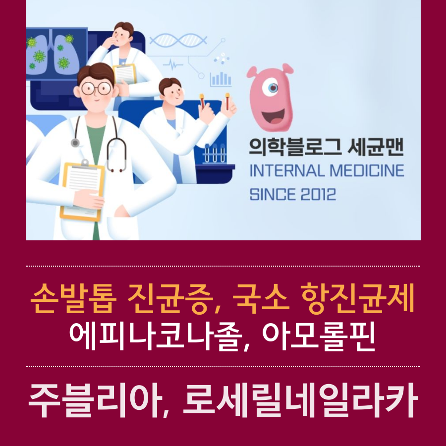 조갑진균증 국소치료제에는 efinaconazole, amorolfine, tavaborole, ciclopirox가 있습니다.
