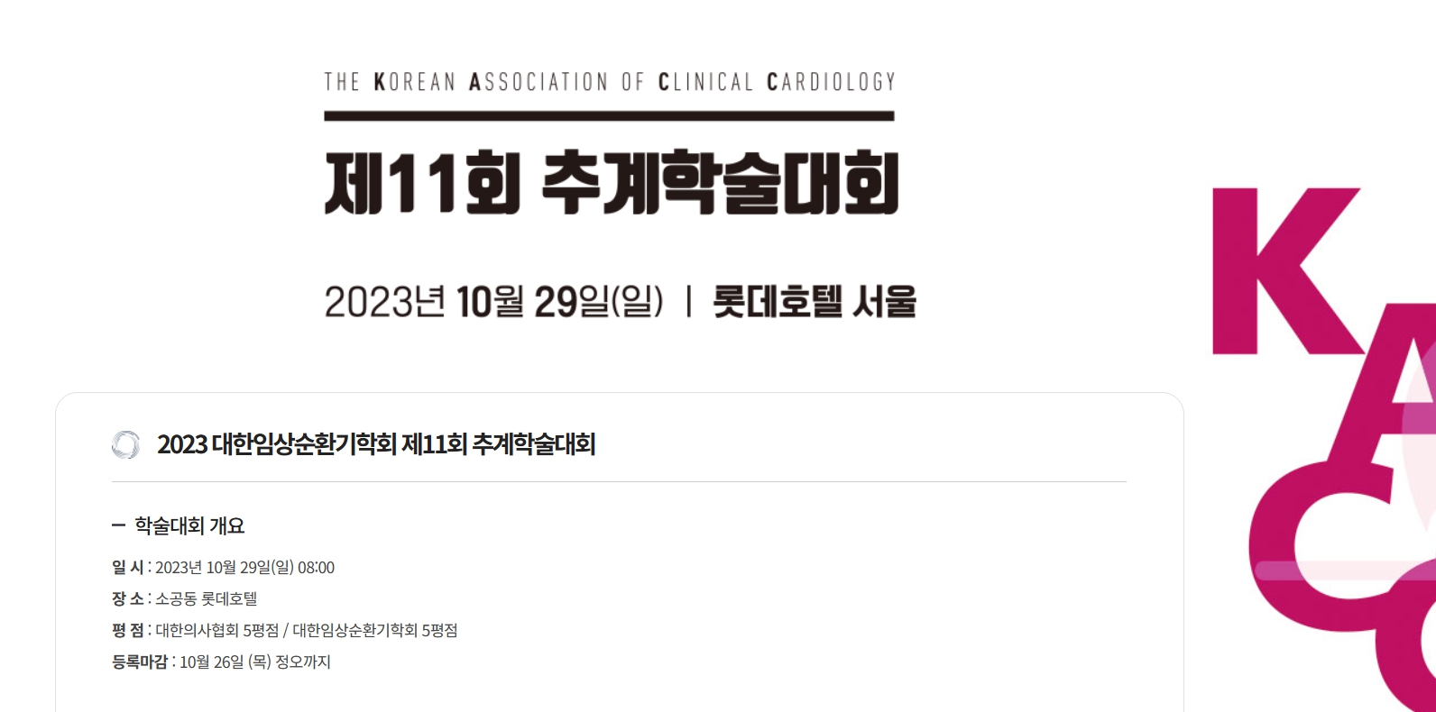 | 2023.10.22 대한내과의사회 추계 학술대회 (1) | 2023.10.16 |