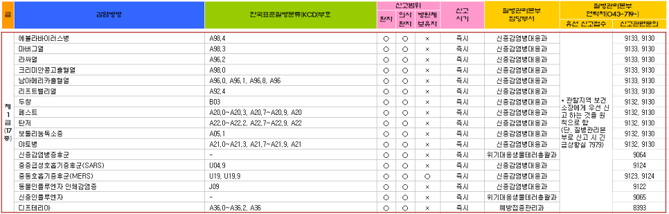 법정감염병 분류와 신고 범위 & 시기에 대한 파일