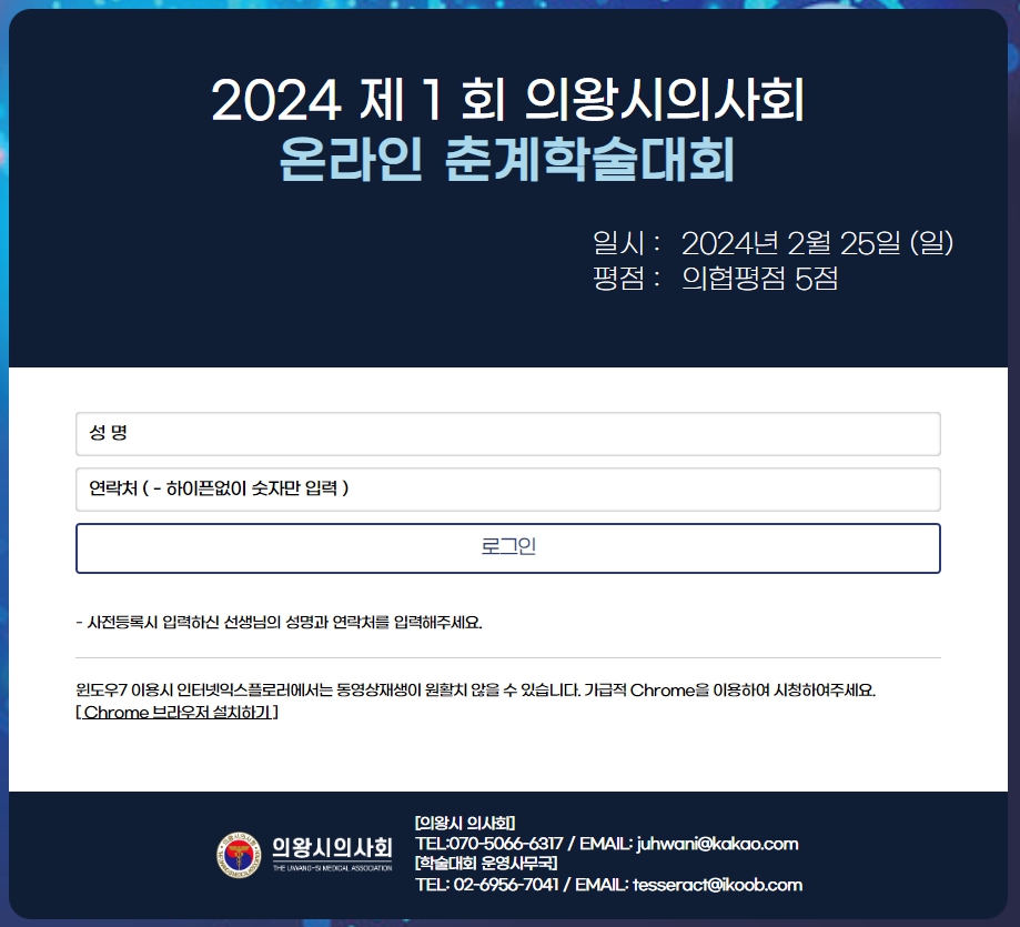 2024.02.25 제1회 의왕시의사회 온라인 춘계학술대회 (1) | 2024.01.04 |