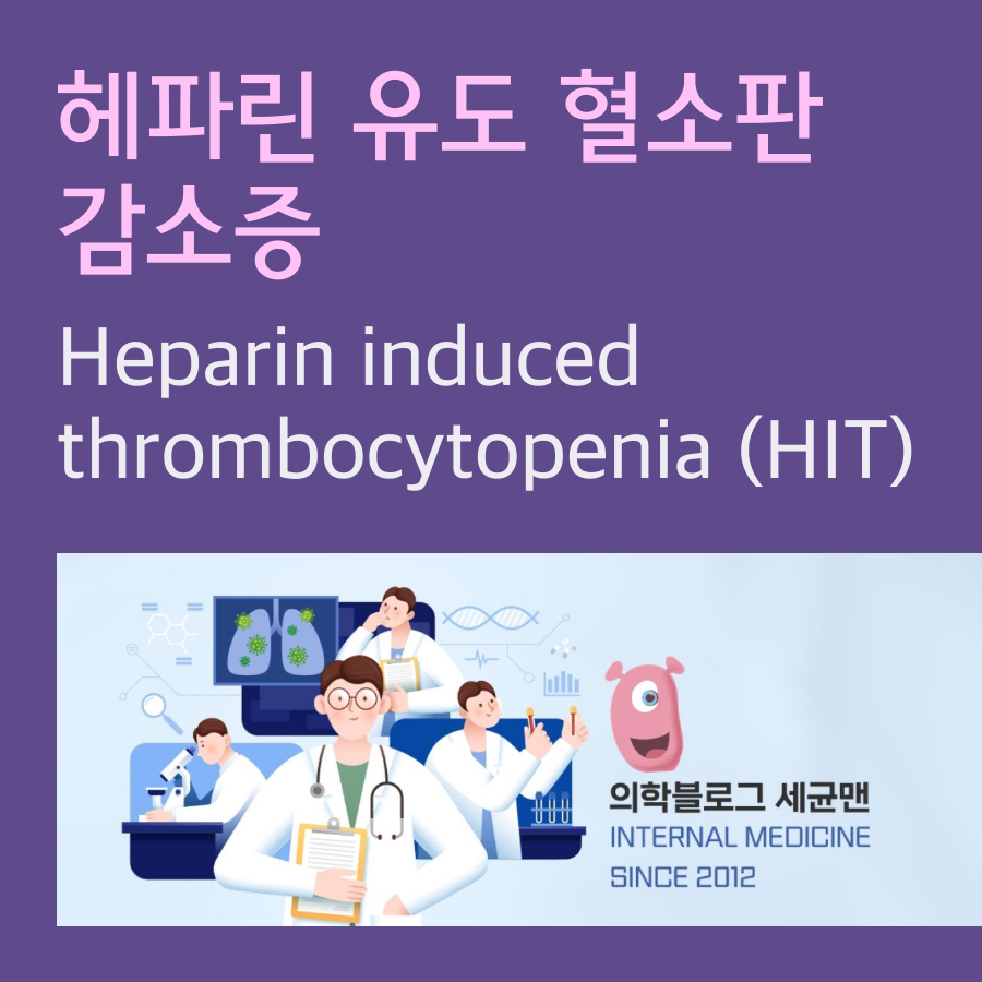 - 헤파린 유도 혈소판 감소증은(Heparin induced thrombocytopenia, HIT) 응고를 방지하기 위해 투여한 헤파린에 의해 역설적으로 혈전이 형성되며 혈소판 수치가 감소하는 질환입니다.