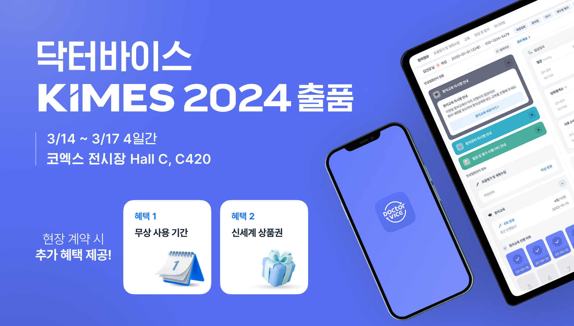 | 닥터바이스 KIMES 2024 출품 [2024.03.14(목)~17일(목)] (1) | 2024.03.09 |