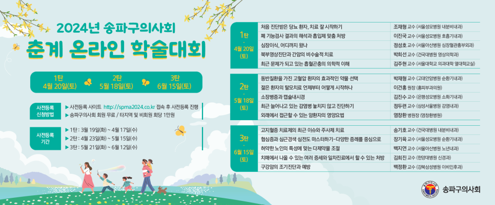 | 2024.04.20 송파구의사회 춘계 온라인 학술대회 〔사전등록 기간 : ~ 04월 17일(수)〕 (0) | 2024.04.14 |