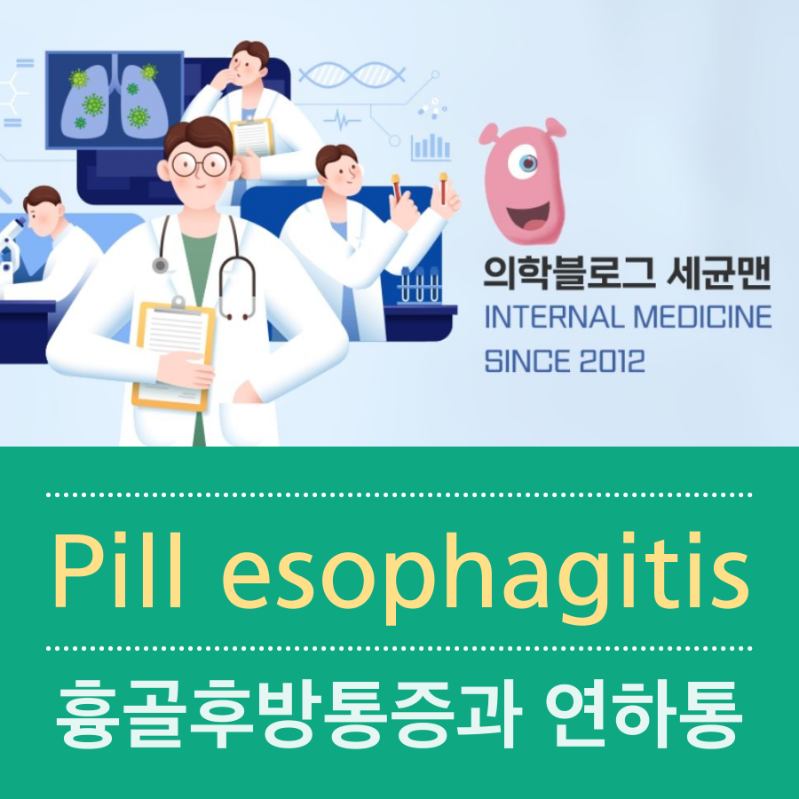 Pill esophagitis의 가장 흔한 증상은 흉골후방통증과 연하통이며, 원인 약제를 삼킨 후 보통 3일 이내에 증상이 발생합니다. 빠른 경우 몇 시간 이내에 증상이 생기기도 합니다. Pill esophagitis should be suspected in patients with retrosternal pain or heartburn, odynophagia, or dysphagia and a history of ingestion of medications known to cause esophageal injury. Patients often also report swallowing a pill without water, commonly at bedtime. In such cases, a clinical diagnosis may be made by history alone.