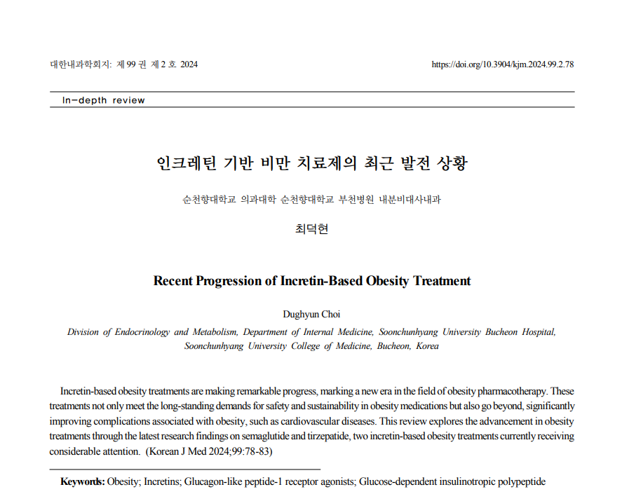 본고에서는 세마글루타이드와 터제파타이드의 비만 치료와 관련된 연구들을 중심으로 최근의 인크레틴 기반 비만 치료제의 발전에 대해 알아보고자 한다.