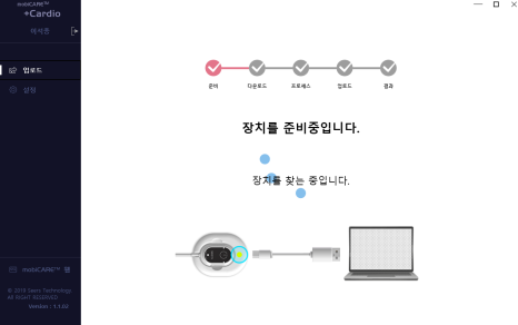 3. <업로드>를 클릭하면 모비케어 장치를 인식합니다.