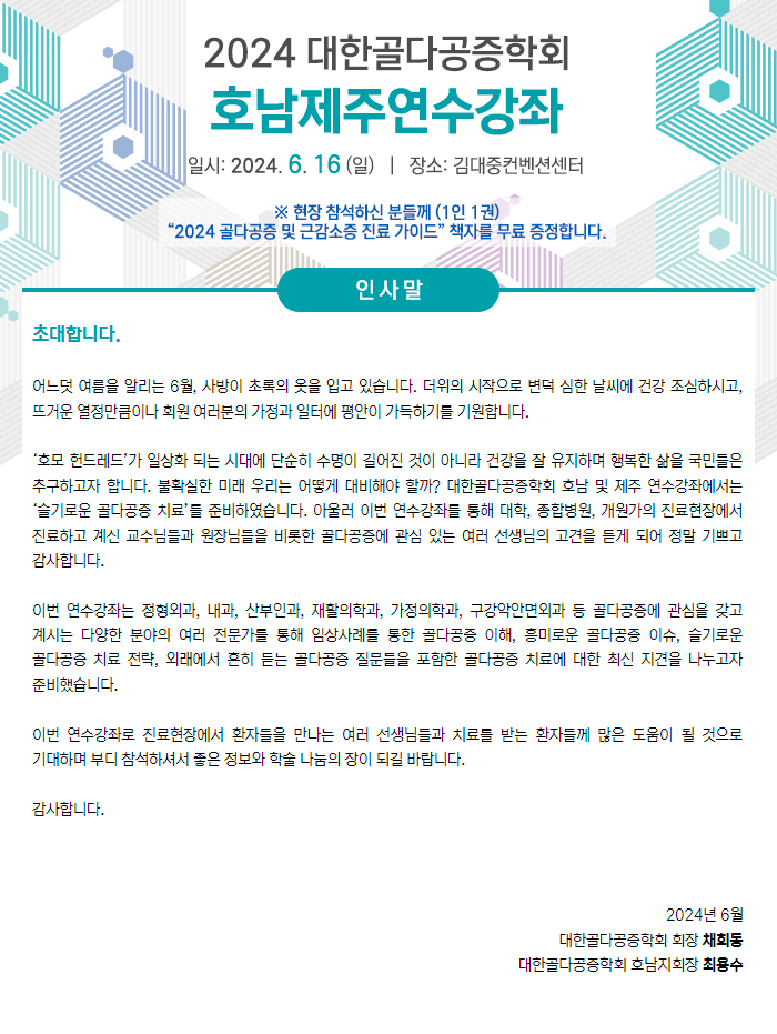 | 2024.07.13-15, 대한골대사학회 SSBH (2) | 2024.05.03 |