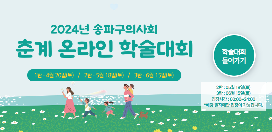 | 2024.06.16 제28회 서울시내과의사회 정기총회 및 학술대회 (0) | 2024.05.22 |