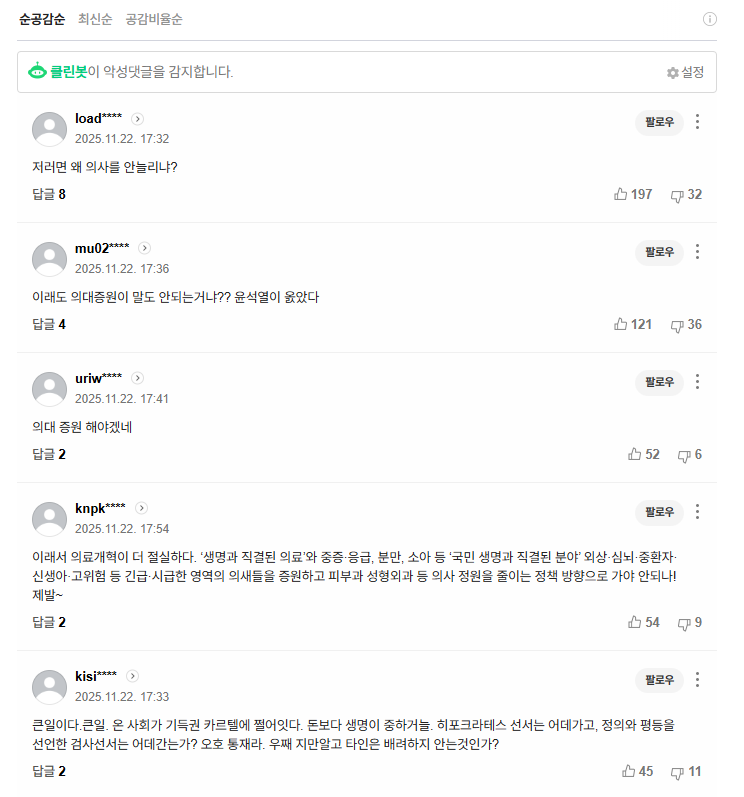 무슨 문제만 생기면 늘 ‘의사 기득권 탓’, ‘의사 수만 늘리면 해결’이라는 식의 주장이 반복되지만, 이제는 그런 주장들을 일일이 설득해 보겠다는 생각 자체가 거의 사라졌습니다.