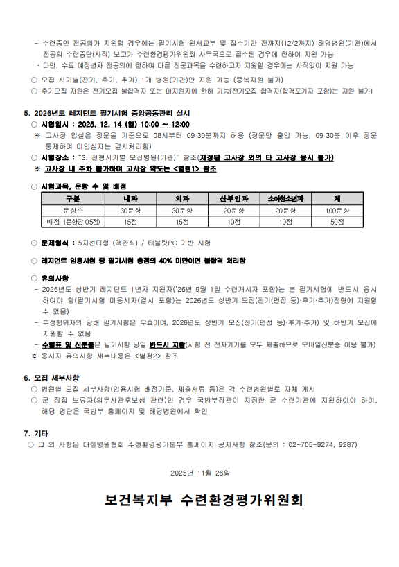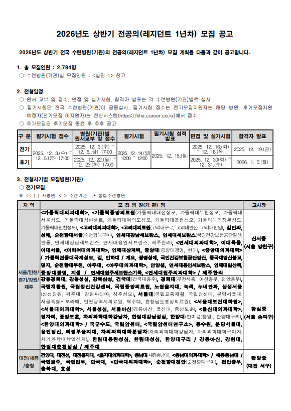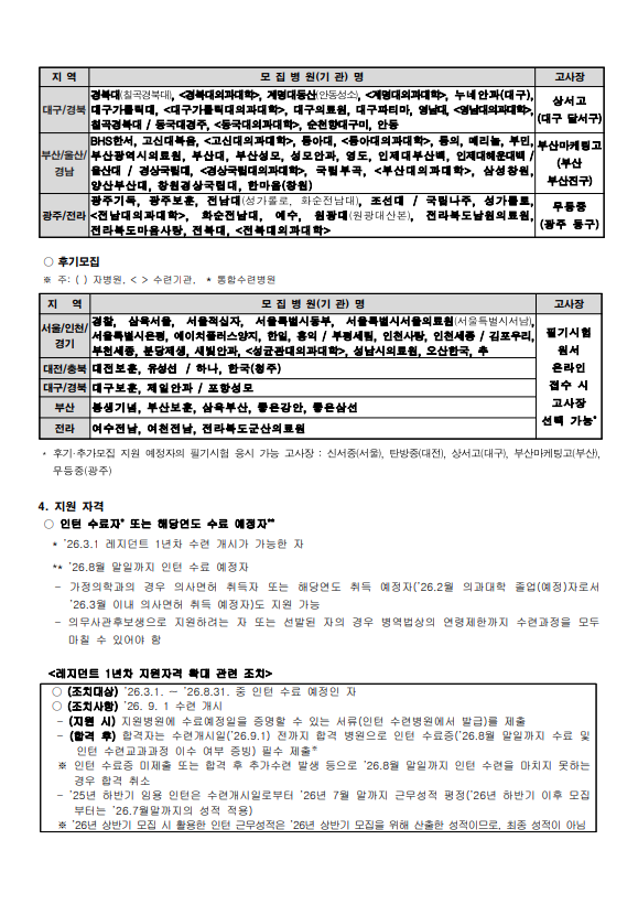 2026년도 상반기 전공의(레지던트 1년차) 모집 공고
