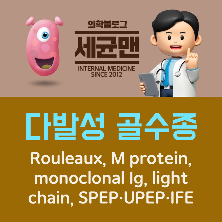 다발성 골수종을 공부하다 보면 M protein, monoclonal Ig, light chain 이 세 가지 용어가 거의 항상 같이 등장합니다. 교과서를 읽을 때는 얼추 이해한 것 같다가도, 막상 정리하려고 하면 “결국 다 같은 말인가, 아니면 서로 다른 건가?” 하는 의문이 생깁니다.