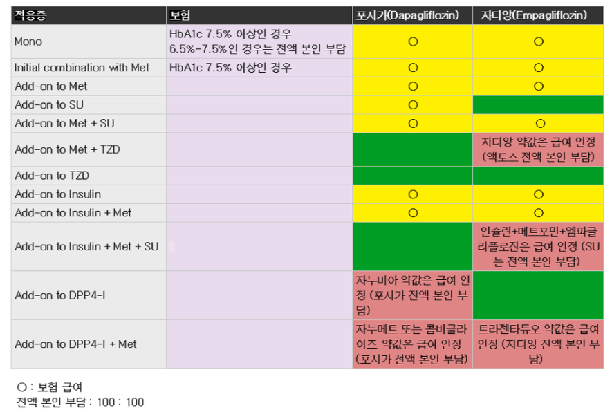 MET + SU + SGLT2억제제 조합은 포시가정, 자디앙정 상관 없이 보험 가능