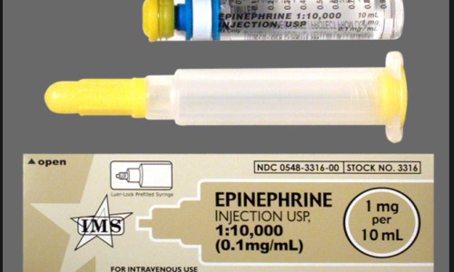 IV bolus 에피네프린은 근육주사보다 의미 있는 dosing errors와 심혈관 합병증을 일으킬 수 있으므로 가능하다면 피해야 합니다. 그럼에도 불구하고 필요한 경우라면 slow IV bolus를 해야 하고, 그 용량은 IM 에피네프린 또는 ACLS에서 사용하는 cardiac epinephrine, prefilled syringes의 1/10을 투약합니다.